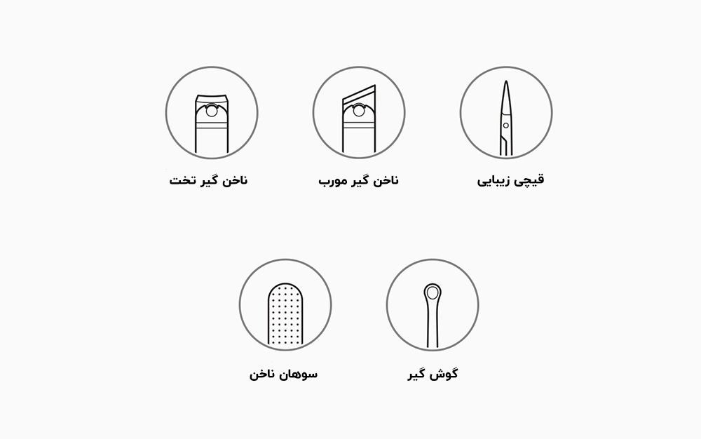 در نگاه اول، یک باکس 65*104*17.3 میلی متری با طراحی مینیمالیستی میبینیم که پس از باز کردن آن 5 ابزار کاربردی برای اصلاح ناخن وجود دارد.