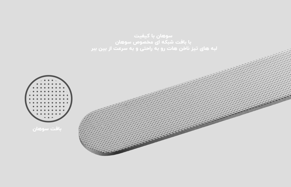 بافت سوهان ناخن نیز بافتی استاندارد برای جلای ناخن و از بین بردن گوشه های تیز آن دارد.