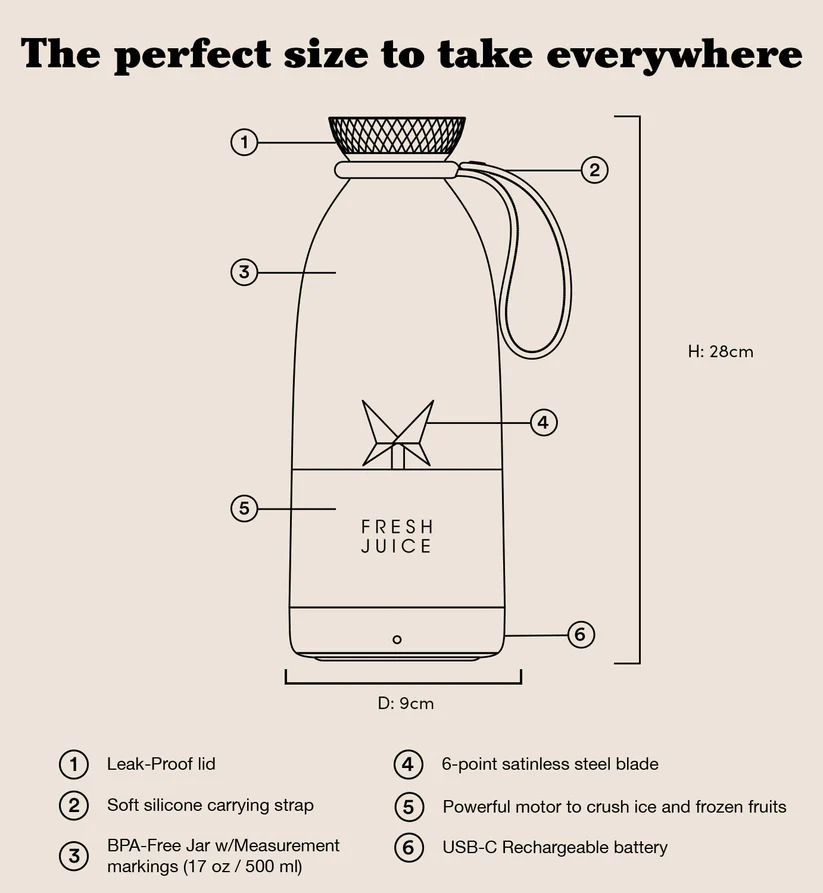 • ویژگی های مخلوط کن قابل حمل Fresh Juice Bottle Blender با ظرفیت 500ML